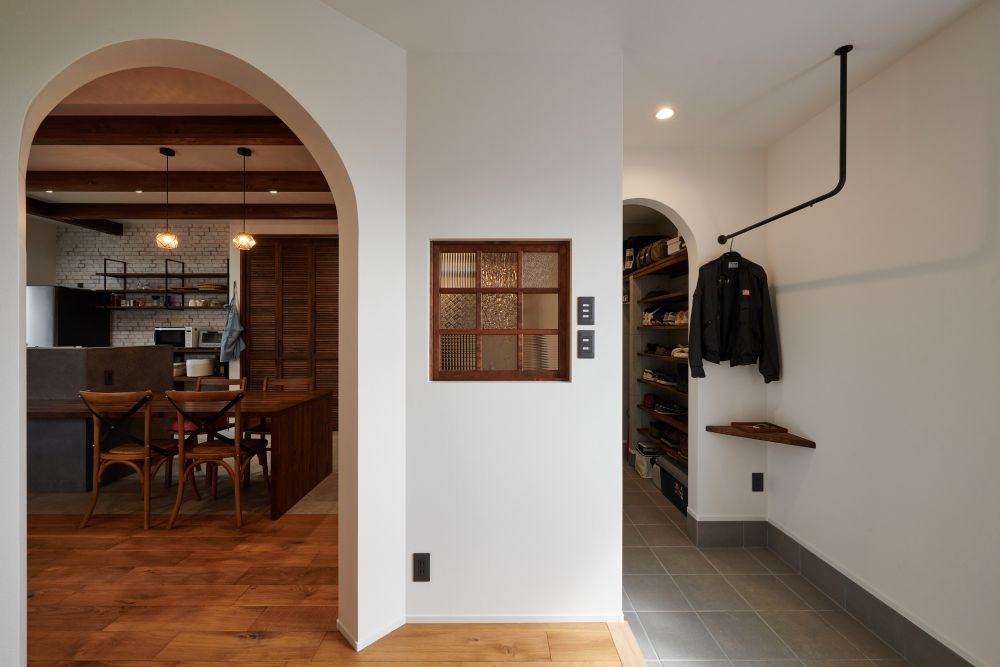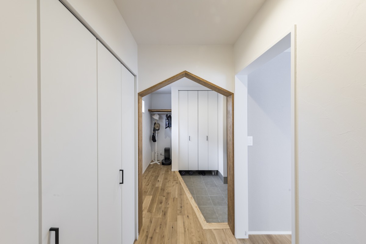 シューズクローゼットへの壁もアーチ壁にすることで玄関が優しい雰囲気になります。