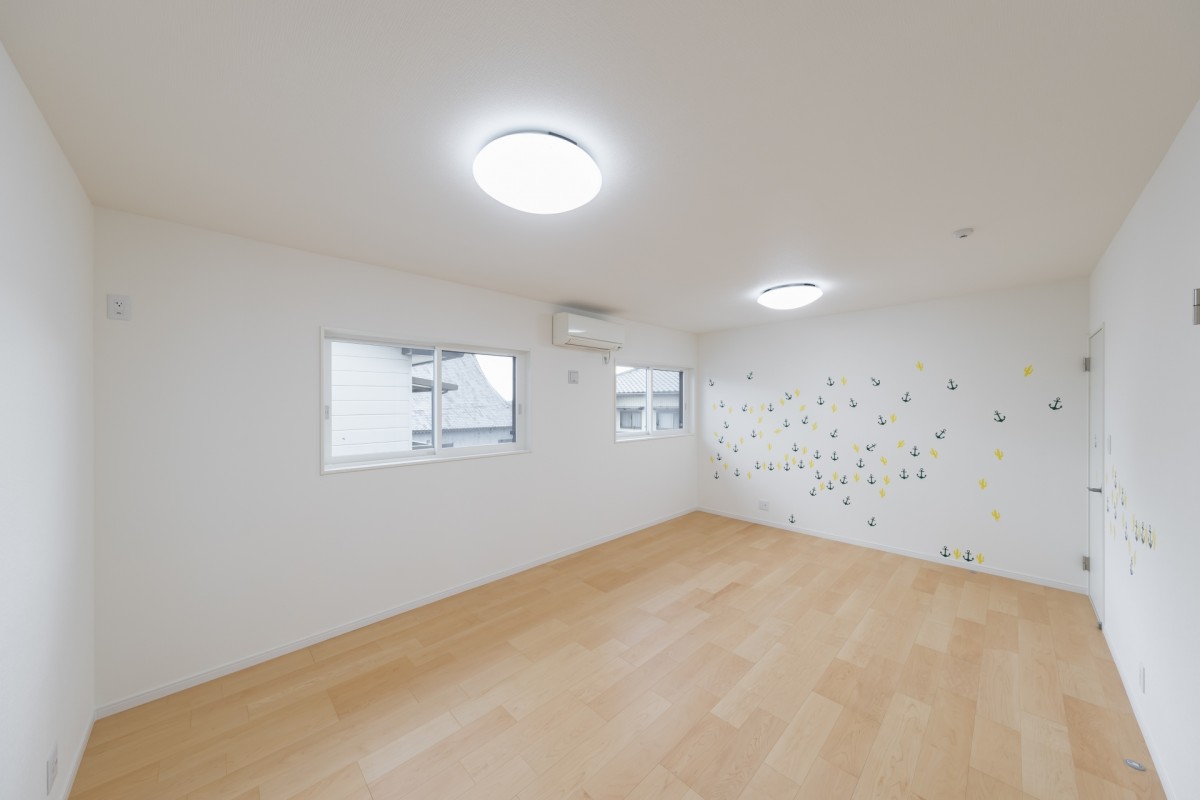壁一面のイカリマークのさりげない遊び心が可愛らしい空間へ導きます。