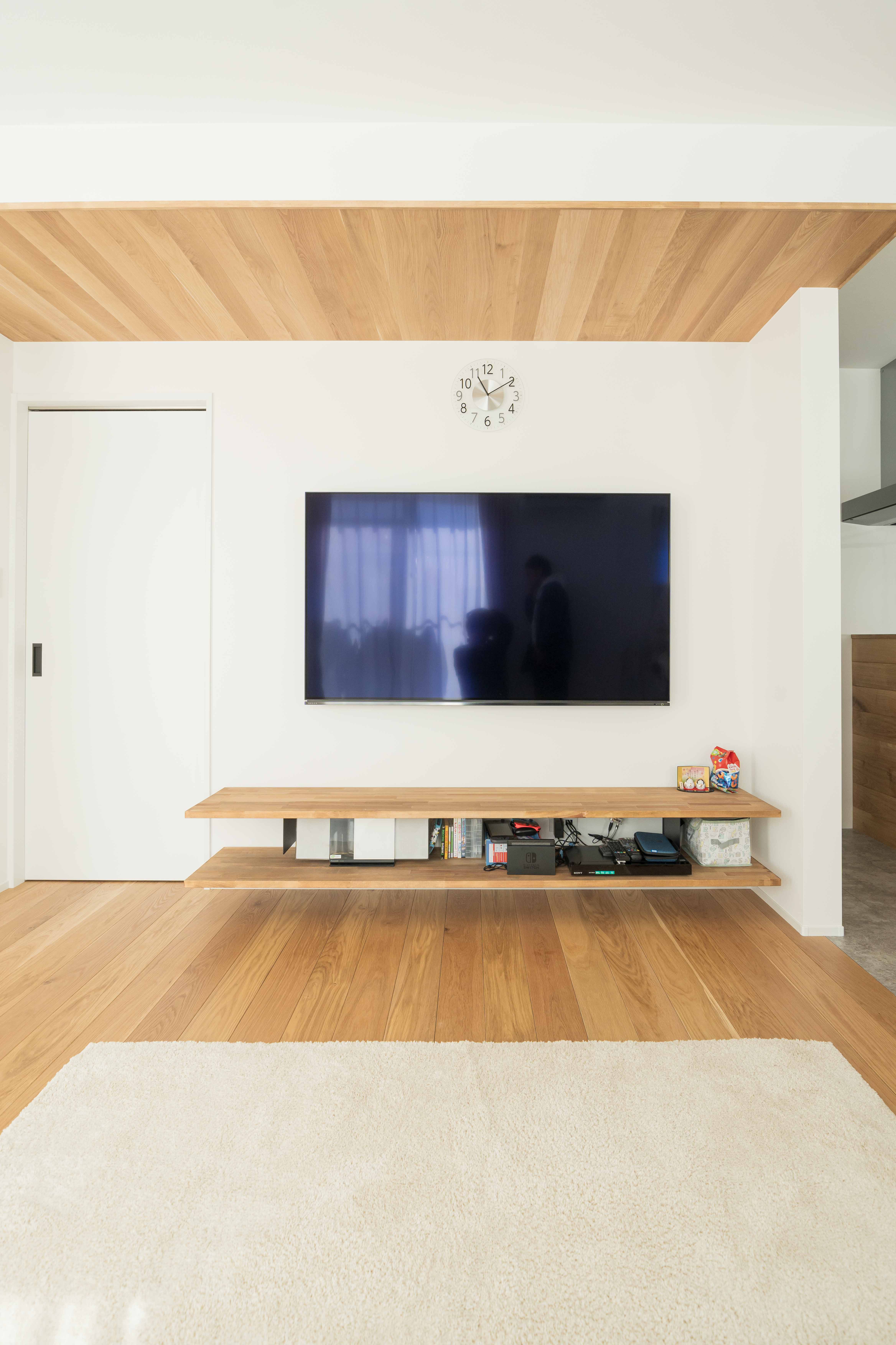 テレビ下のカウンターは小物を置いたり、ゲームを収納するスペースにぴったり。