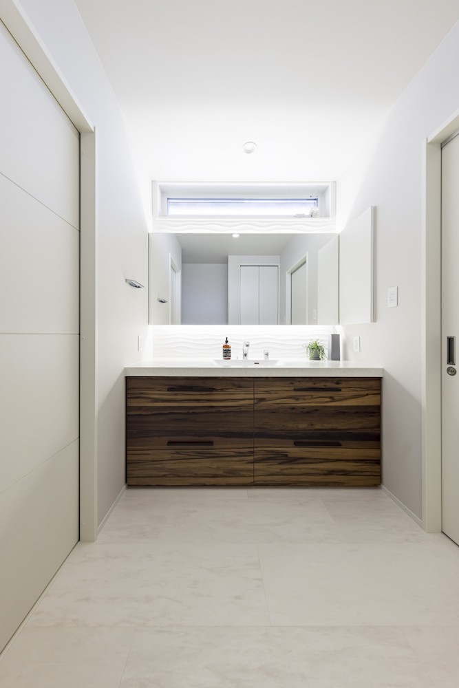 洗面室と脱衣室を完全に分けた間取り。脱衣室は、洗濯に関する家事をまとめて行うことのできるランドリールームでもあります。