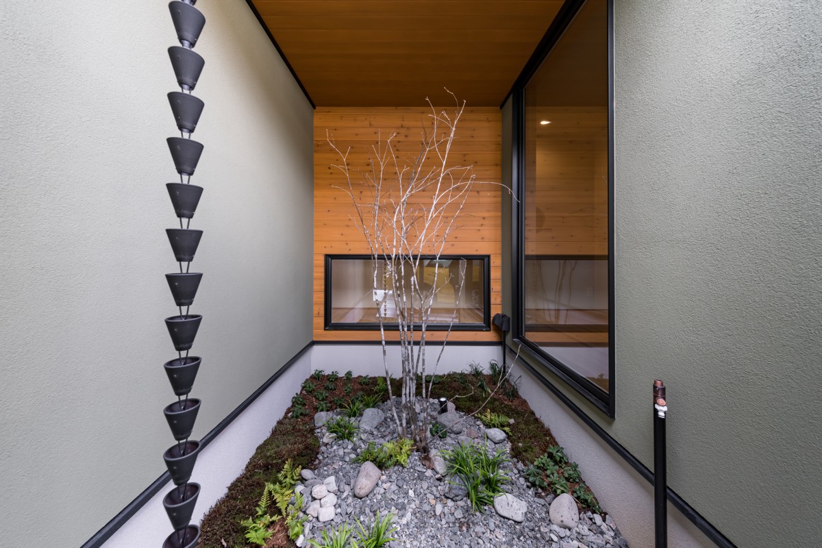 緑と光を取り込んだ奥行きのある玄関