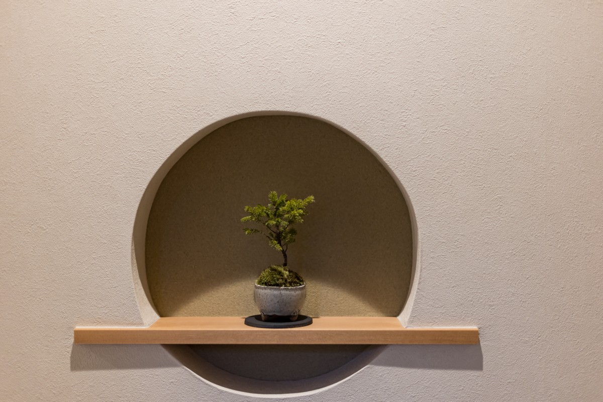 円形ニッチ。季節の小物やグリーンを楽しめて玄関も華やかに